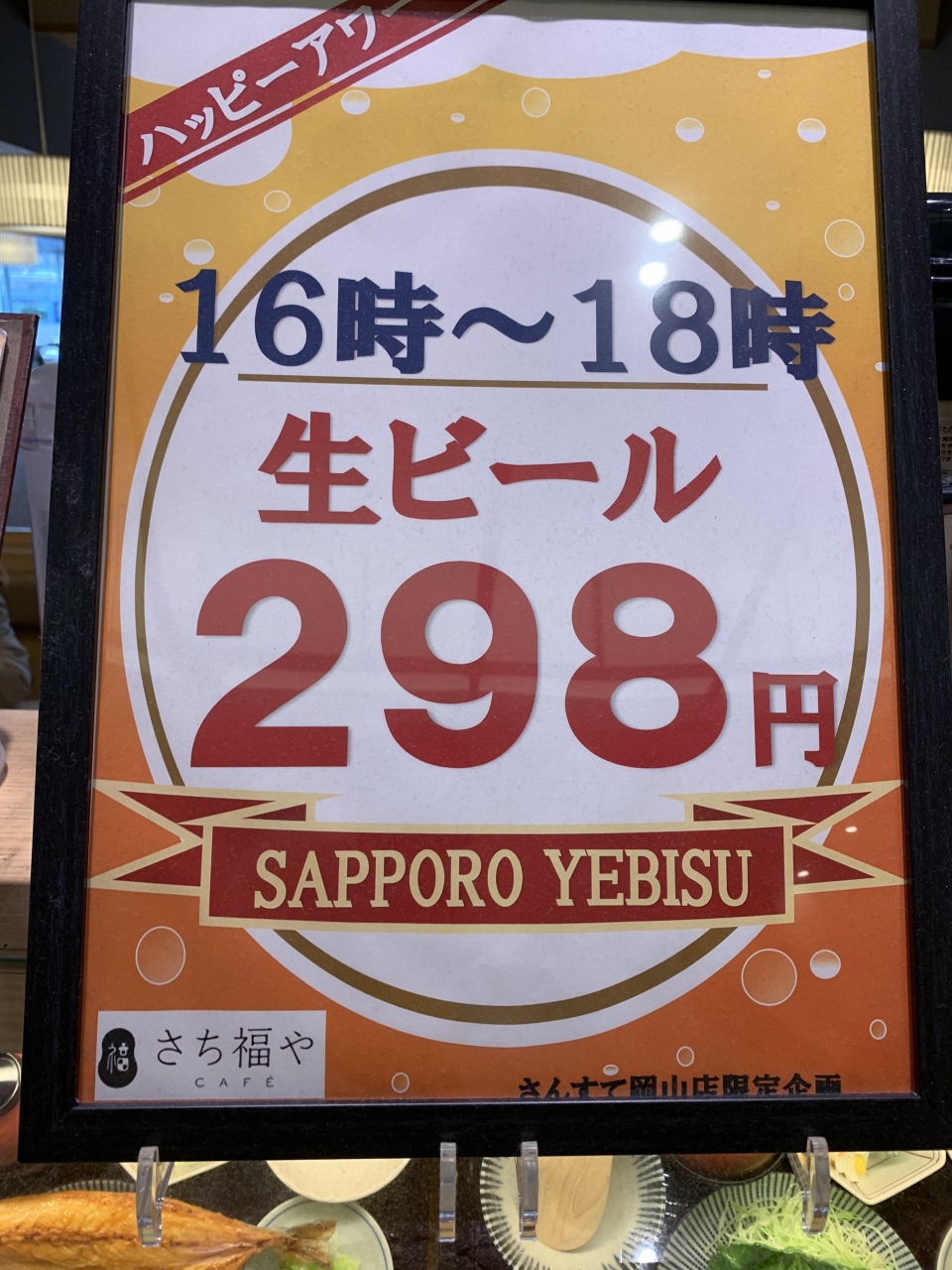 さんすて岡山店 限定企画 ハッピーアワー 生ビール298円