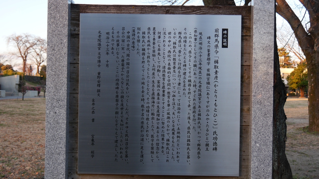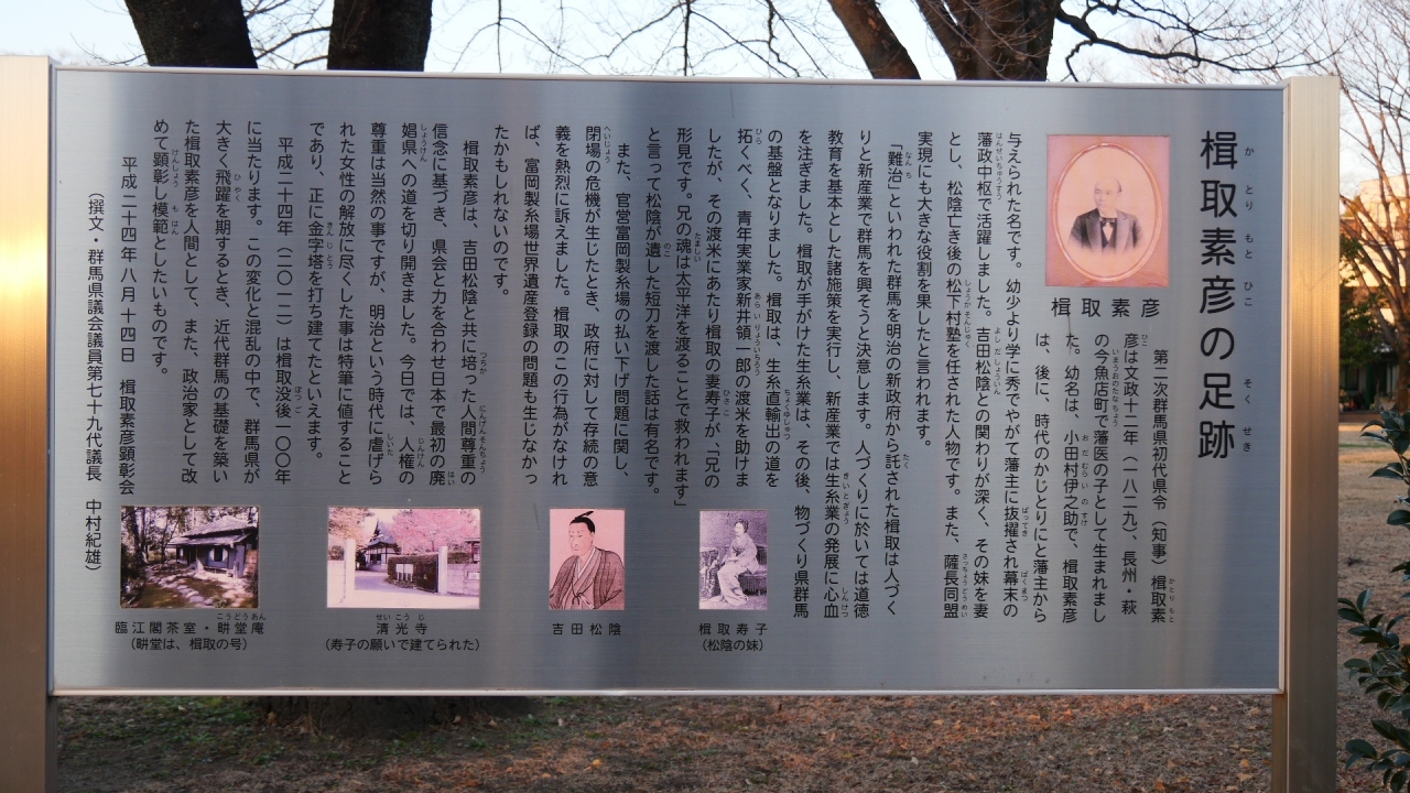 大河ドラマの影響か、「花燃ゆ」の主人公である楫取素彦の銅像がありました。