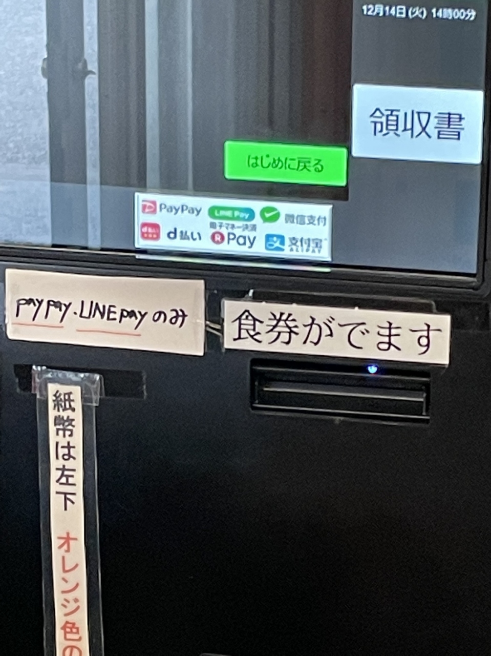 支払いは現金だけでなく電子マネーも使えますが、PayPayとLINE Payのみです。