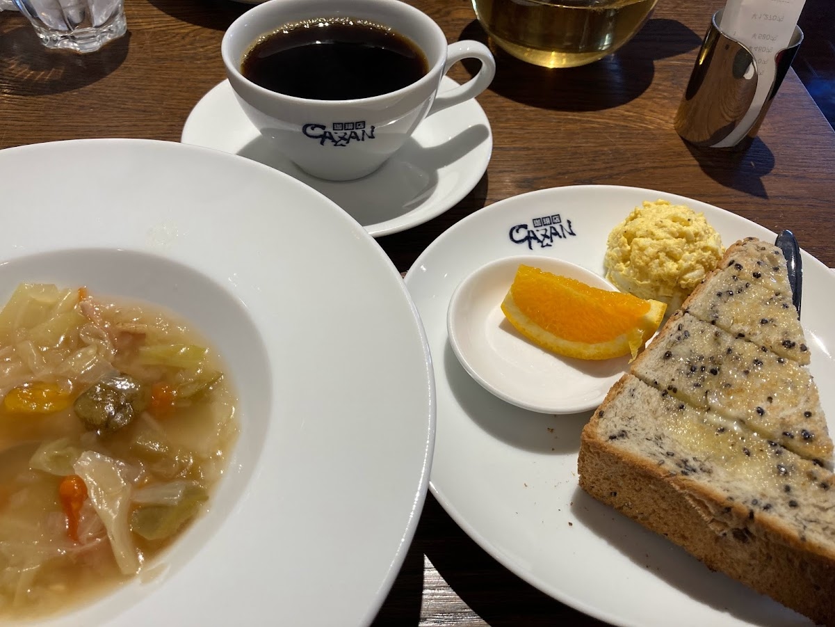 モーニングで利用しました。追加料金なしのレギュラーモーニングもありますが、スープが付いたスープモーニングを注文しました。具だくさんで、身体が喜ぶあったまるスープでした。珈琲も種類が多く、本日のおすすめサービスコーヒーのマンデリンにしました。本格的なコーヒーが少しお値打ちにいただけました。中日新聞のClife 1月号の珈琲特集で入れ方アレンジコーヒーレシピ協力で、ここの本店の名前が出ていました。また行きたいお店です。