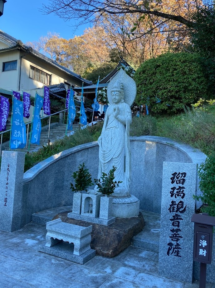 本堂横には稲荷大神様があり、本堂前の瑠璃観音菩薩様も立派でした。
