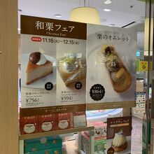 「和栗のチーズケーキ」「和栗のロールケーキ」「和栗のオムレット」が数量限定販売中でした。