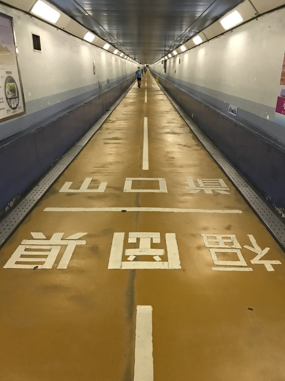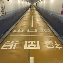 関門トンネル人道(福岡県門司):歩行者は無料、海底に県境表示