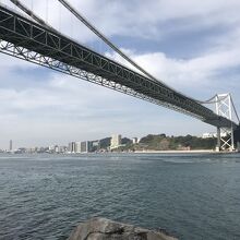入口前から見える関門海峡の潮の流れは早く、目前に本州が見える。歩いて海の向こうの本州に行ける。