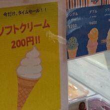 タイムセールの時に行くとソフトクリーム200円、マリヤシェーク半額