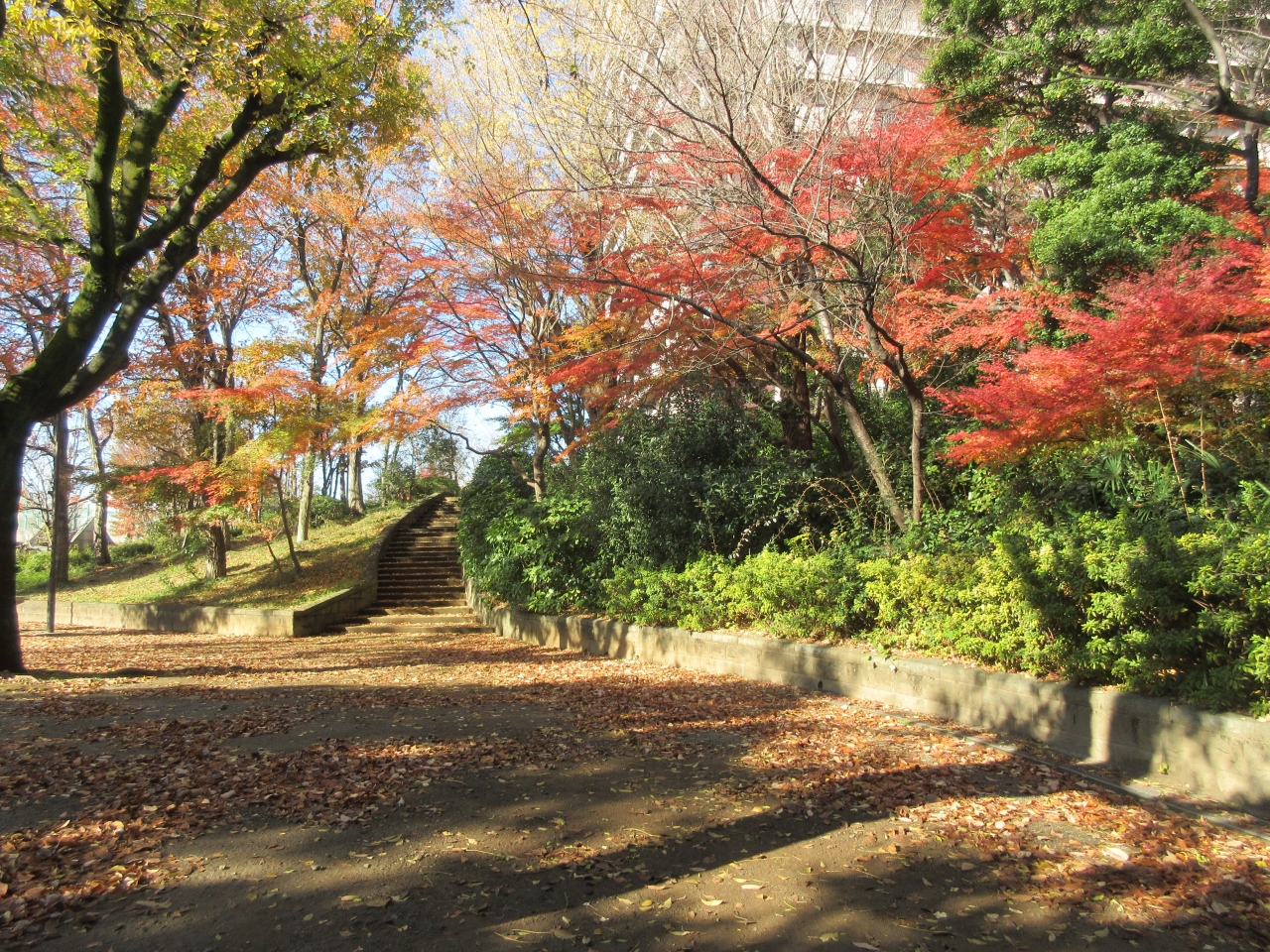 JR恵比寿駅の動く歩道・スカイウォーク終点から5分ほど、高層マンション・恵比寿ビュータワーの裏に造られている高台にある公園です。夏の水が流れる人工池や、シーソー、すべり台、ブランコなどの児童遊具が設置されています。JRの列車の音が気になりますが、小鳥のさえずりが聞こえ木々も紅葉していて、近隣の人たちが犬を連れて散歩している姿も見られます。公園が少ない恵比寿周辺では貴重な公園だと思います。