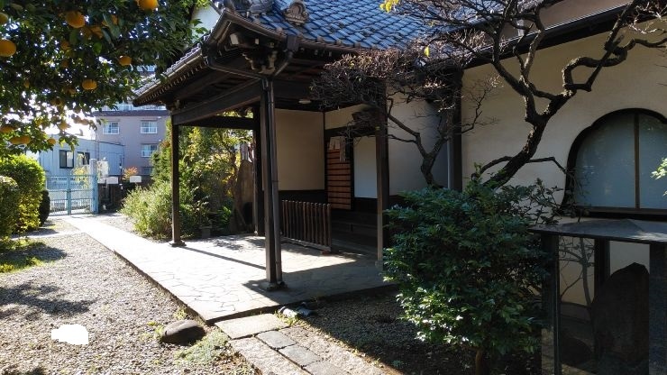 広大な敷地を有する海晏寺とはくらやみ坂をはさんで隣接している。こちらは境内はコンパクトで、本堂も正面から撮影すると画面に収まりきらない。くらやみ坂沿いから山門をくぐると複数のお地蔵さんが並んでいるのが特徴的。境内は松尾芭蕉にゆかりがあり、句碑などを見ることができる。