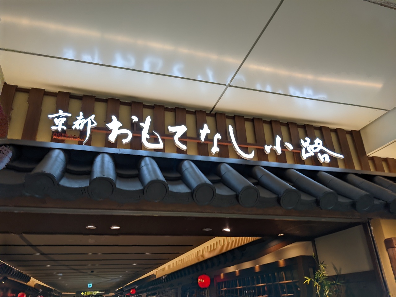 京都駅(八条口)に「京都おもてなし小路」はありました。落ち着いた雰囲気で、色々な飲食店が並ぶレストラン街です。新幹線の改札口からも近いので便利ですし、京都らしいお店もあり、おばんざいを食べたりもできるのでオススメです。