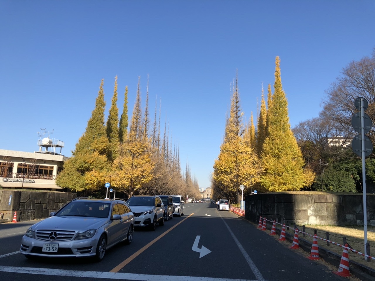 外苑前のイチョウの並木を見に行きました。背が高い木が揃っており見応えのある並木です。