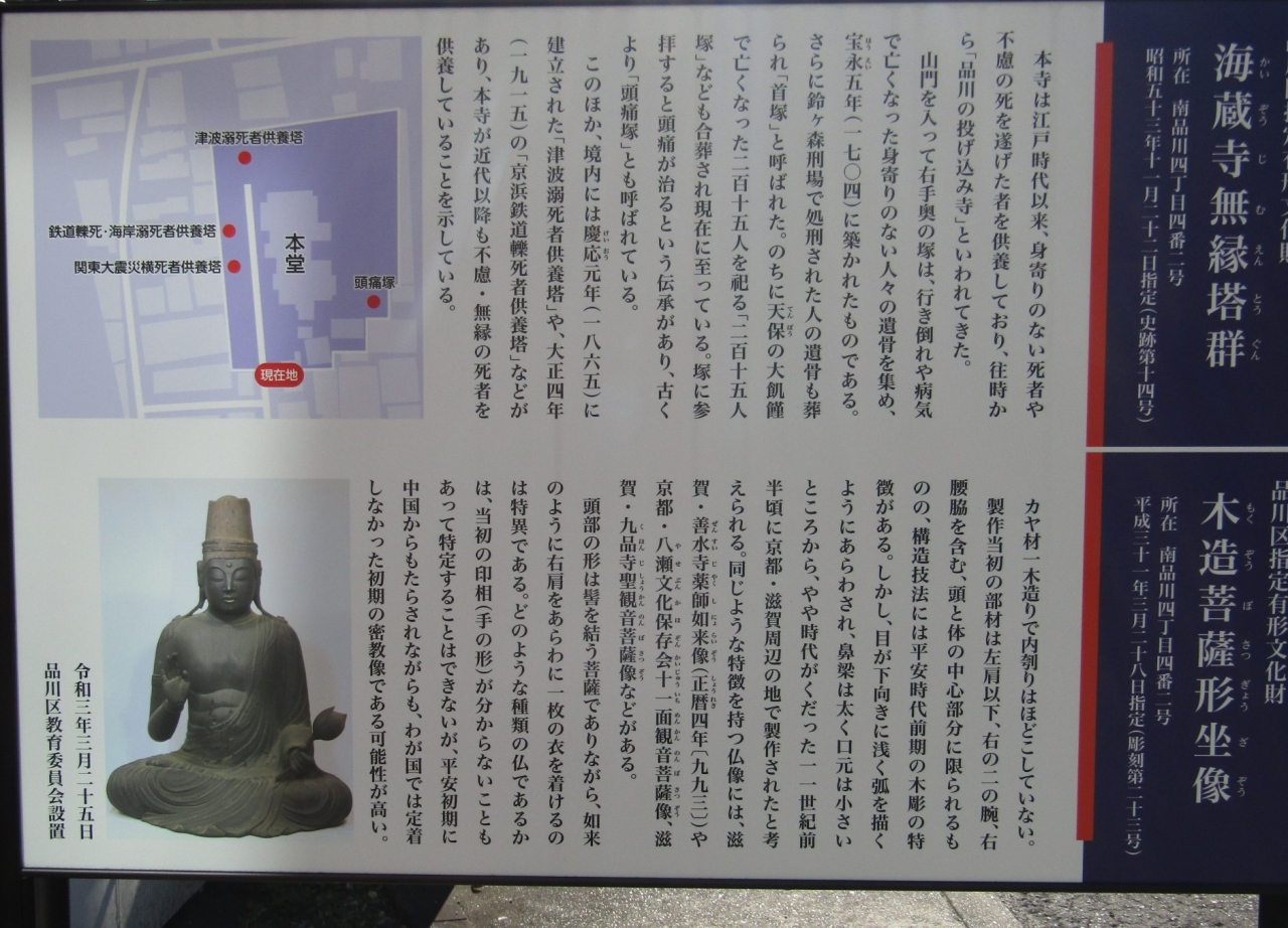 ちょうどお寺の方がいて、本堂に上りお参りさせて頂いたうえ、品川区有形文化財指定の菩薩像を拝観しました。