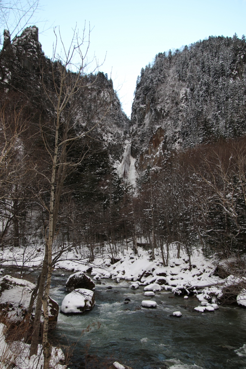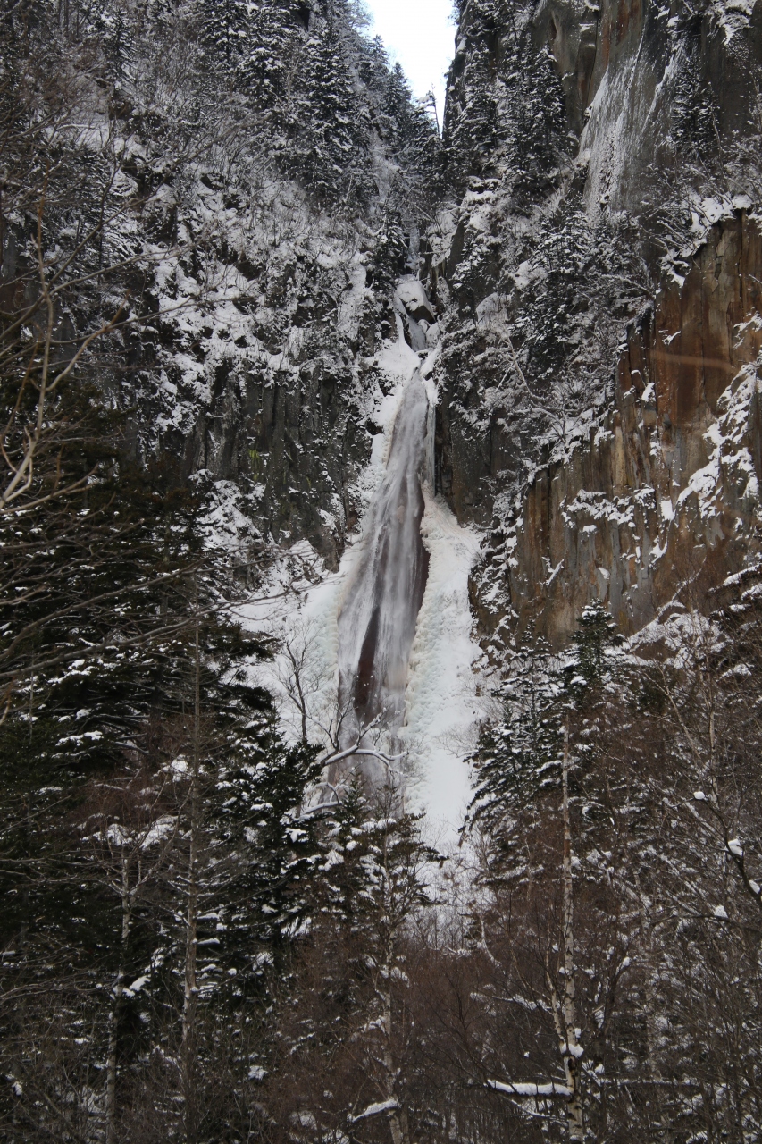 層雲峡を代表する雄大な滝ですが冬季には凍結します。流星の滝が男滝で隣接してある銀河の女滝女滝で夫婦滝だそうです。日本の滝百選に選ばれている雄大な滝ですが冬季には凍結してしまうので観るなら凍結していない季節に訪れることをお勧めします。