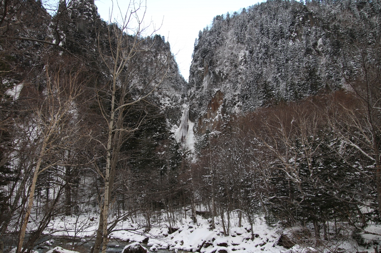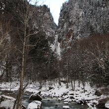 層雲峡を代表する雄大な滝ですが冬季には凍結します。