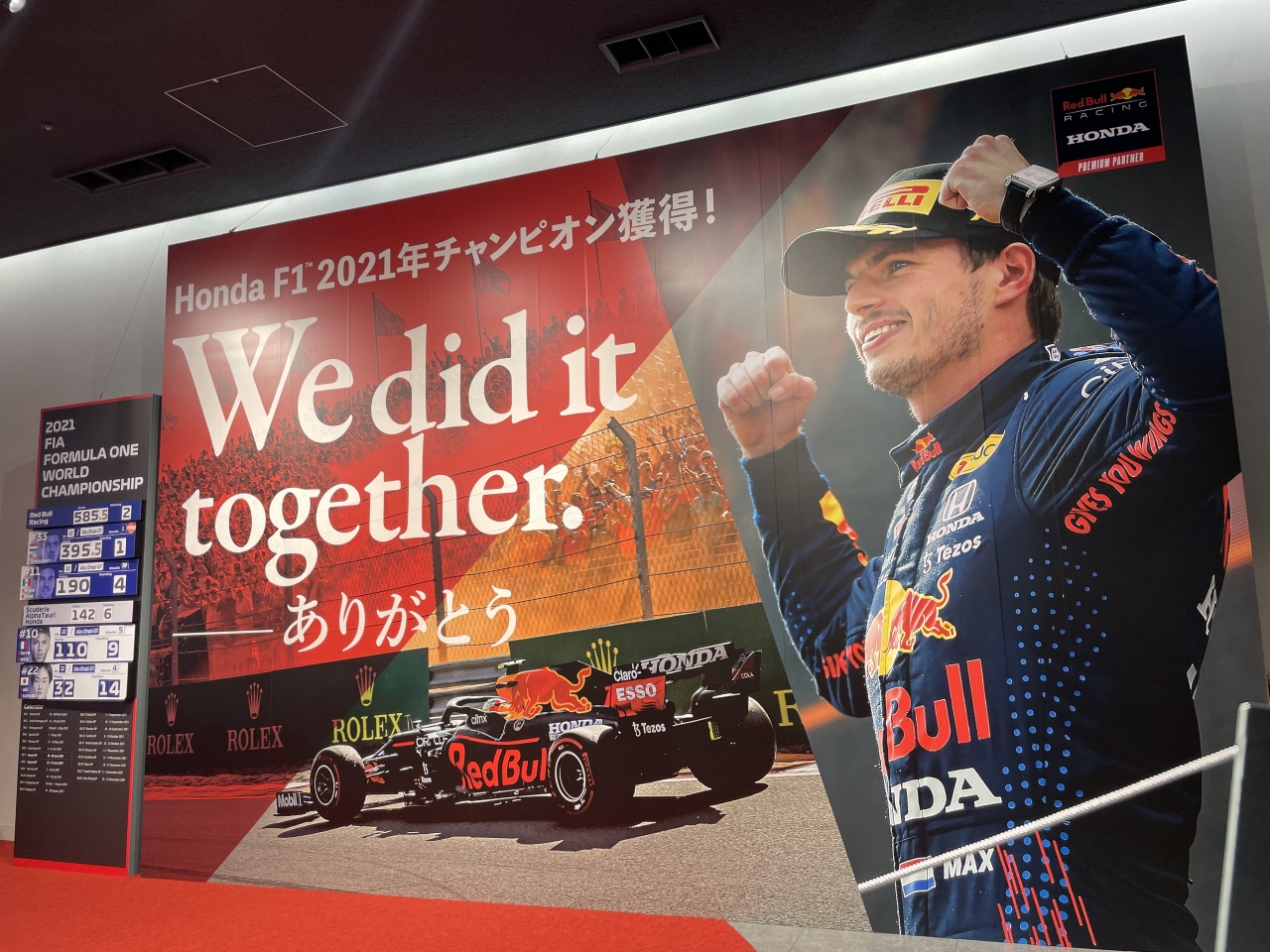 早速、レッドブル・ホンダのF1年間優勝を祝ってF1マシンが展示されています!