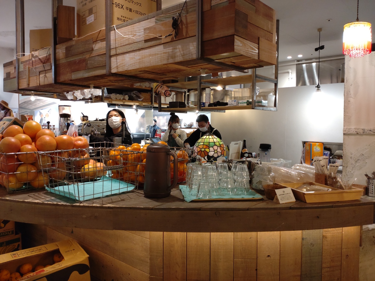 イオンモール岡山5階にあるカフェ。岡山市の県庁通りに一号店があり、岡山県内を中心に中四国に展開する自然な果物を使ったジュースのマルゴデリのお店。店内はレトロなソファやテーブルが並び、テラス席もあり、無骨な作りがまた良い。アンダーグラウンドのBGMが心地よい。フレッシュジュースに加えてサンドイッチやケーキ、スイーツもあるので、買い物の休憩にちょうど良い。定番のバナナジュースやキウイジュース、レモンジュースもびみですが、季節のおすすめも美味。この冬に販売されたベリーミックスは、本物のイチゴや潰したものなので、イチゴのつぶつぶ感が残っており、素材をしっかり味わえます。フレッシュジュースをくつろぎながら楽しめる場所です。