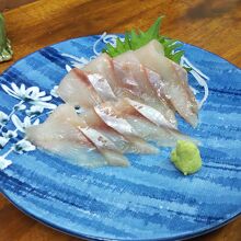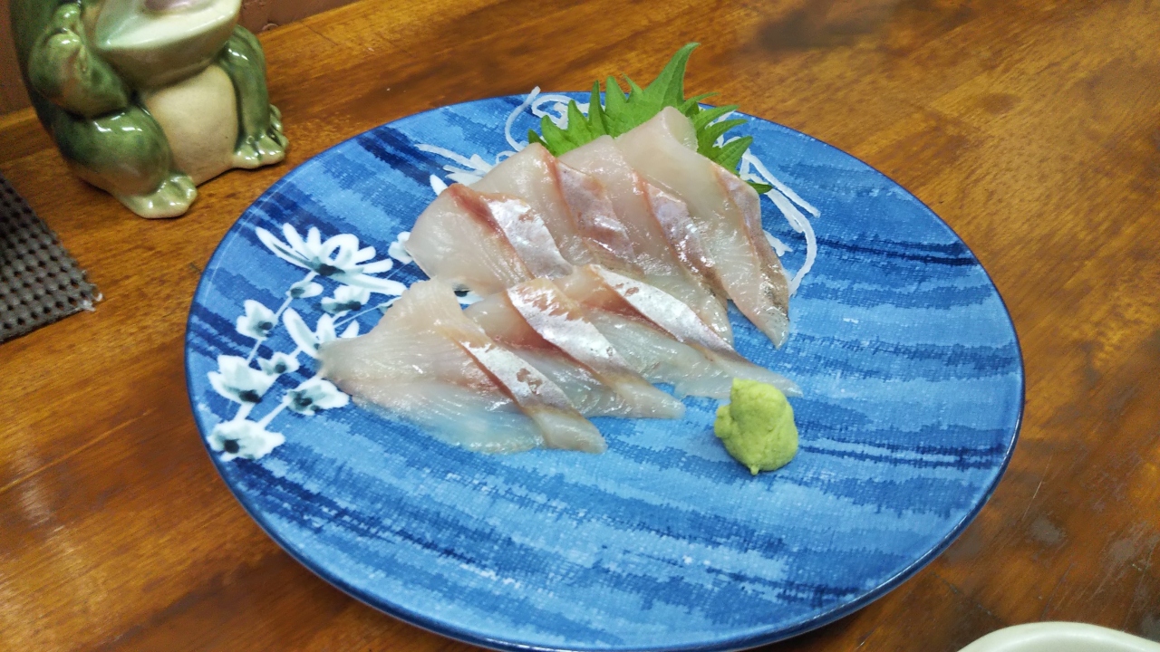 ホッケの刺身は白身とほんのり赤みみたいな感じで、癖も全くなく美味しかった。
