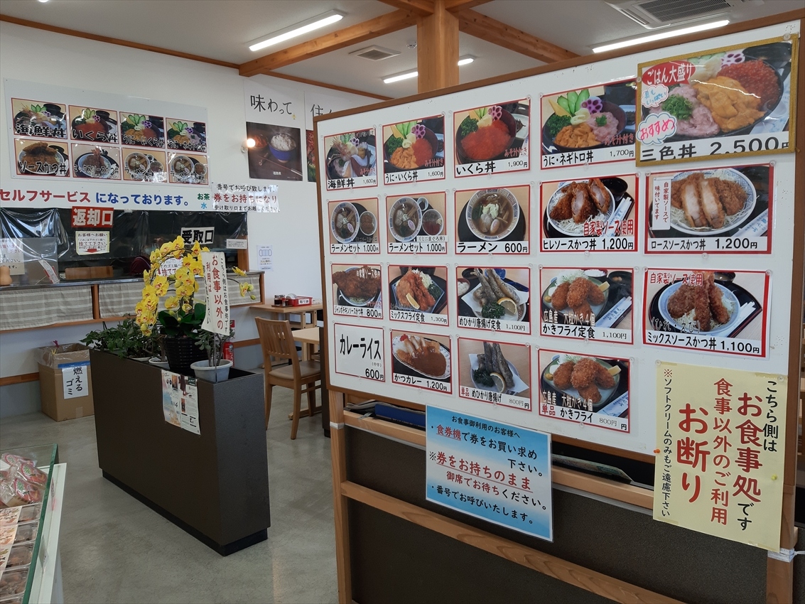 ここはまず食券を買う仕組みで、食事内容は海鮮が主体ですが、ソースカツ丼などもあり、好みが分かれるグループでも大丈夫。