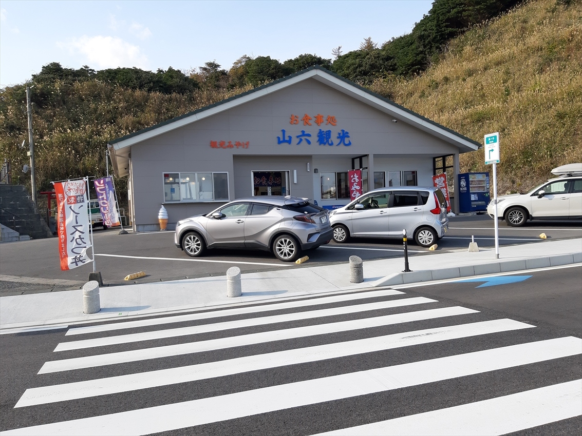 その灯台への上り口や歌碑がある場所から福島県道382号線を渡ってすぐの場所にあるのがこの山六観光と言う食堂。