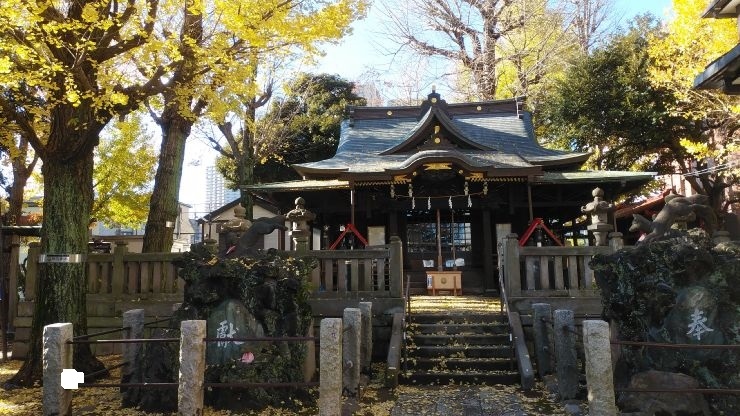 隅田川に隣接した立地。コンパクトな境内だが、本殿の建物はしっかりとした立派な造りをしていた。江戸時代からの建物らしい。本殿前のイチョウの木々が紅葉を迎えており、境内の雰囲気をより美しくしていた。