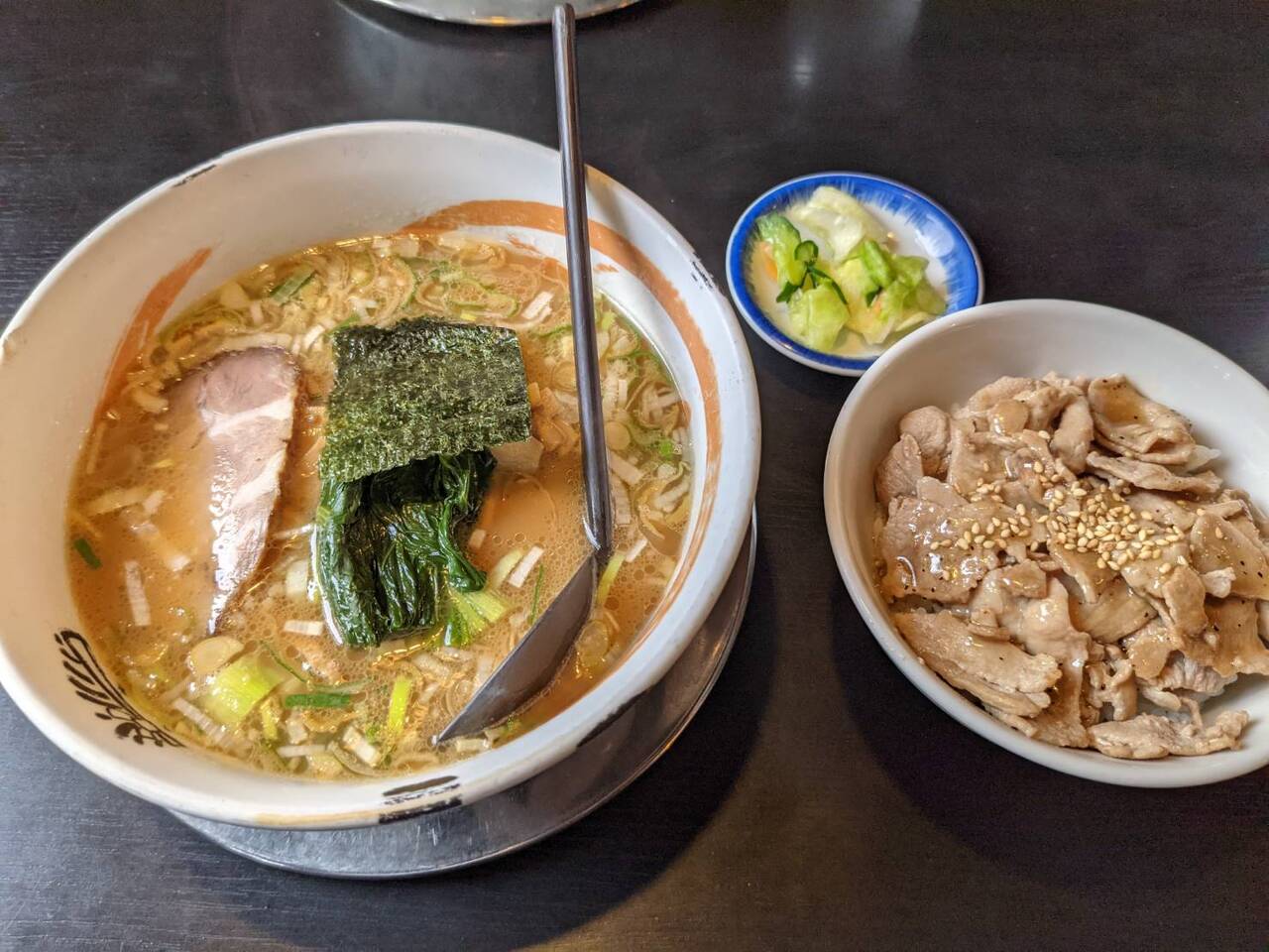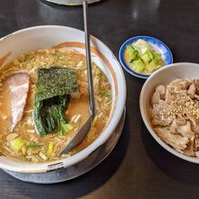 新潟市西区にあるらーめん屋さんです。おすすめの「がんこらーめん」は、白湯と鰹だしのダブルスープでこってりとのことでしたが、これと言ったインパクトもないスープでした。ランチタイムだったので、チャーハンや豚丼(塩ダレ)のセットがお得でした。