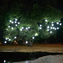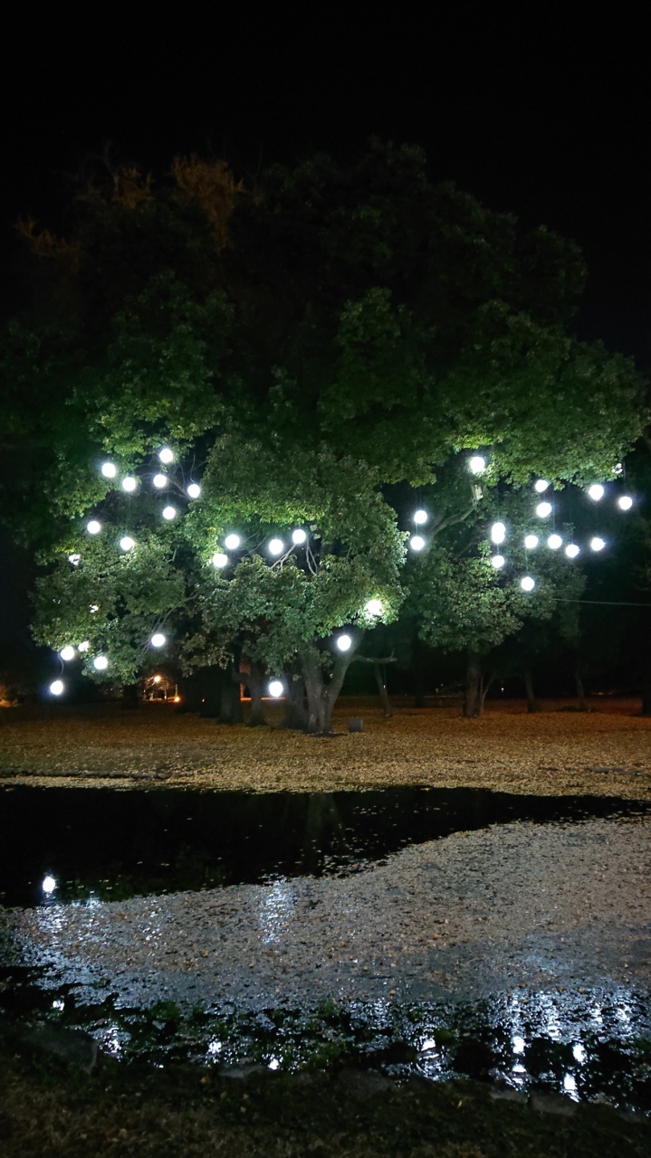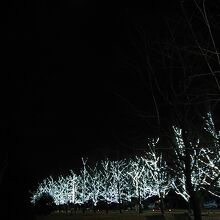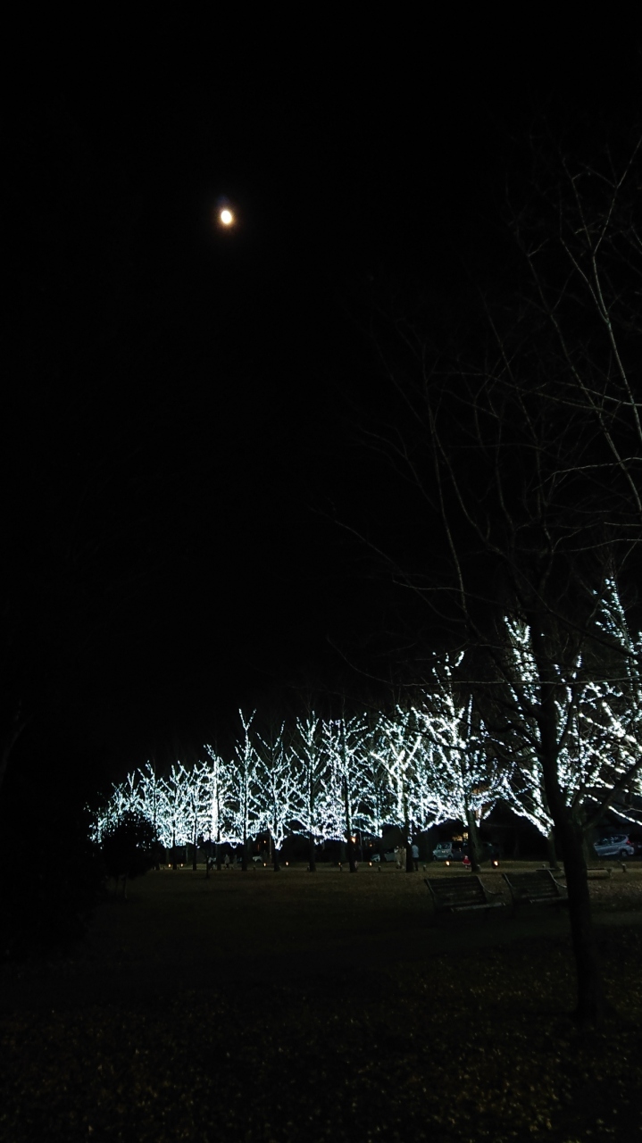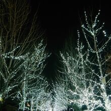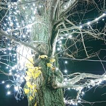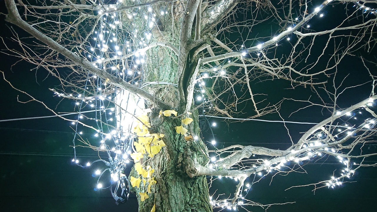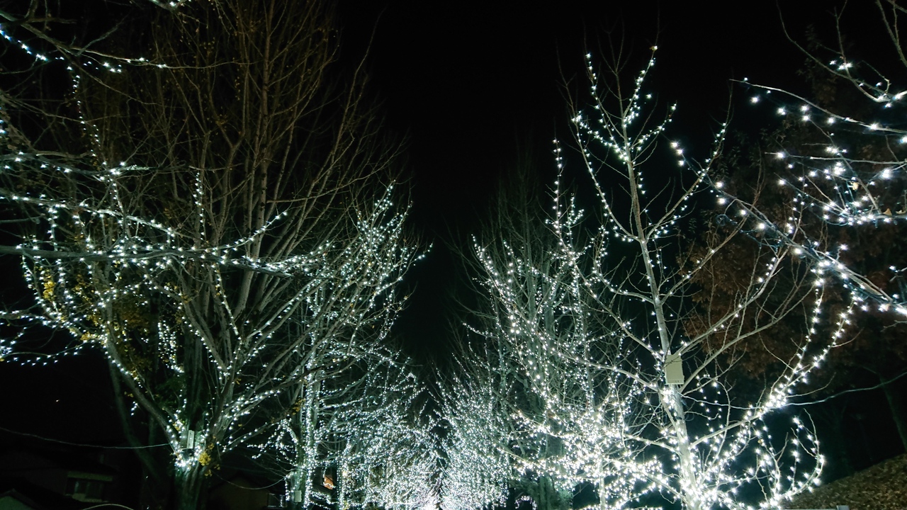 「学びの森イルミネーション」開催期間中の、12月中旬の夕方遅くに訪問しました。2021年度は、2月4日から2月14日まで開催されるとのことです。イルミネーションのメインである、イチョウ並木部分を中心に、賑わいがありました。イチョウの黄色い葉が枝に僅かに残っていたり、地面に落ち葉として存在していたのも、イルミネーションとの対比で趣がありました。