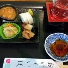晩酌セットがあって、日本酒1種類とおつまみ4種を1000円で楽しむことができました。