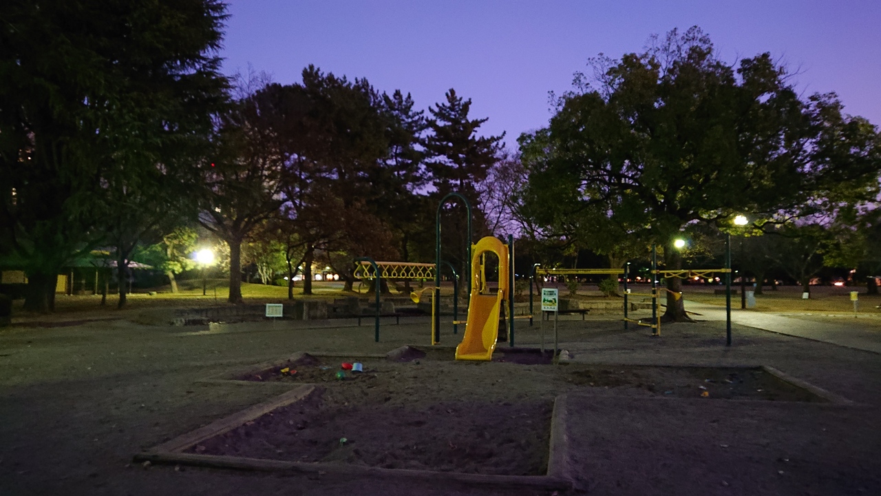 12月中旬の平日の17時台に訪問しました。かなり暗くなっていましたが、公園内には一定数の来園者が見受けられました。24時間開放されていますので、夜間でも利用自体は可能です。しかしながら、やはり日中に来た方が良いかな、と実際に訪問して感じました。