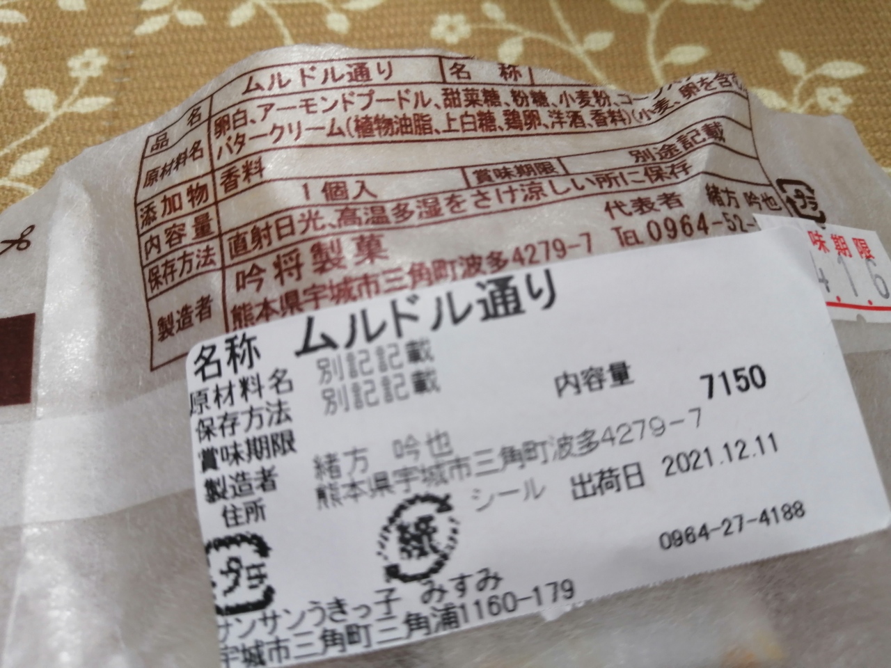 A列車で行こうに乗る際に、少しだけ時間があったので立ち寄りました。変わった名前だなぁと思いましたが、せっかく三角まで来たので、こちらのスイーツを買ってみたいなぁと選びました。しっかりしとした重量感のあるスイーツで、アーモンドの美味しさもあり満足しました。