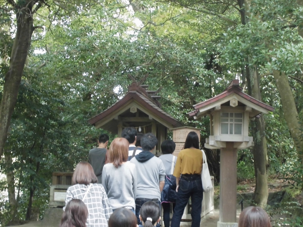 出雲大社の大鳥居をくぐって少しすると右に建物があります。小さい神社ですがそこが祓社です。小さくて狭い神社なので多くの人が並ぶと参道にまで人が出ていました。こんな小さい神社にも行列ができてしまうところが出雲大社のすごいところだと思います。