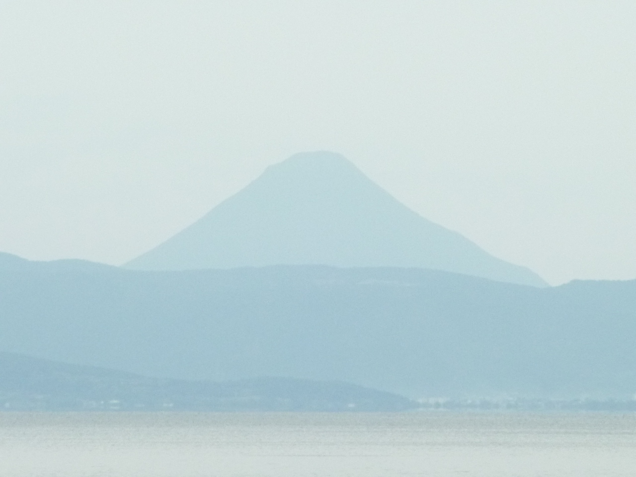 砂浜に戻って海の向こうを見ると開聞岳が富士山のように見えました。