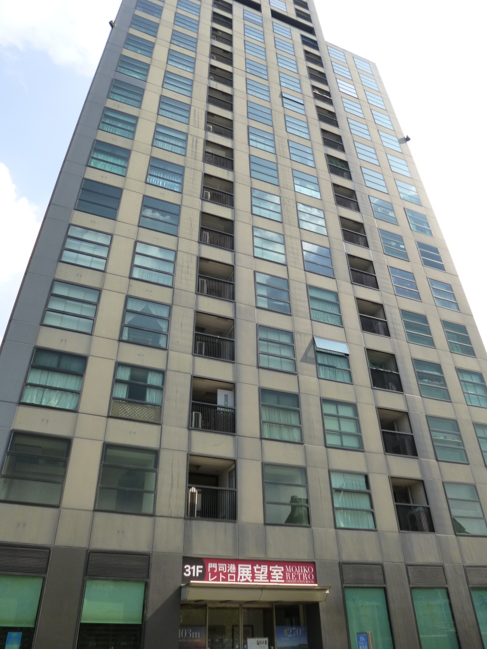 門司港のレトロ地区の近く、ひときわ目立つ高層マンションがあります。ここは黒川紀章さん設計のマンションでその31階に門司港レトロ展望室があります。夜景を見ようと訪ねたのですが、コロナの影響で、夜間の営業は行われていませんでした。関門海峡やレトロ地区のきれいな街並みの夜景を一望できるということで期待していたので残念でした。