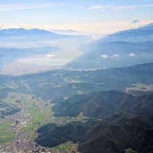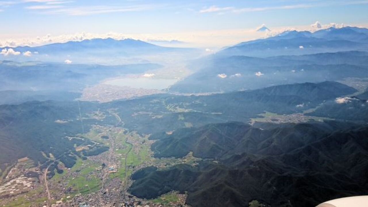 大阪方面から松本空港に向かうフライトでは右側のまどがおすすめだ。なぜなら富士山や諏訪湖を眺めることができるからだ。松本空港に到着間際、空から諏訪湖を見ると諏訪湖周辺に街が形成され、盆地になっているのがよくわかる。空から眺める諏訪湖も格別だ。
