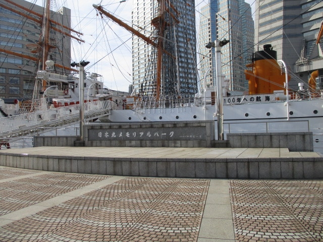 JR桜木町駅から赤レンガ倉庫館方面に進むとみなとみらい21地区で最初に整備された日本丸メモリアルパークに歩いて2分ぐらいで着きました。日本丸メモリアルパークは帆船日本丸、横浜みなと博物館、タワー棟の展望台、なだらかな芝生の緑地や船の部品のプロペラ、エアー・コンプレッサー、メインマスト用トップ・ゲルンマストの展示してました。退役した日本丸の実物は見ごたえありました。