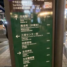 「サンキタ通り西詰」には、行き先の案内板がありました。
