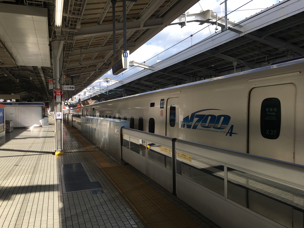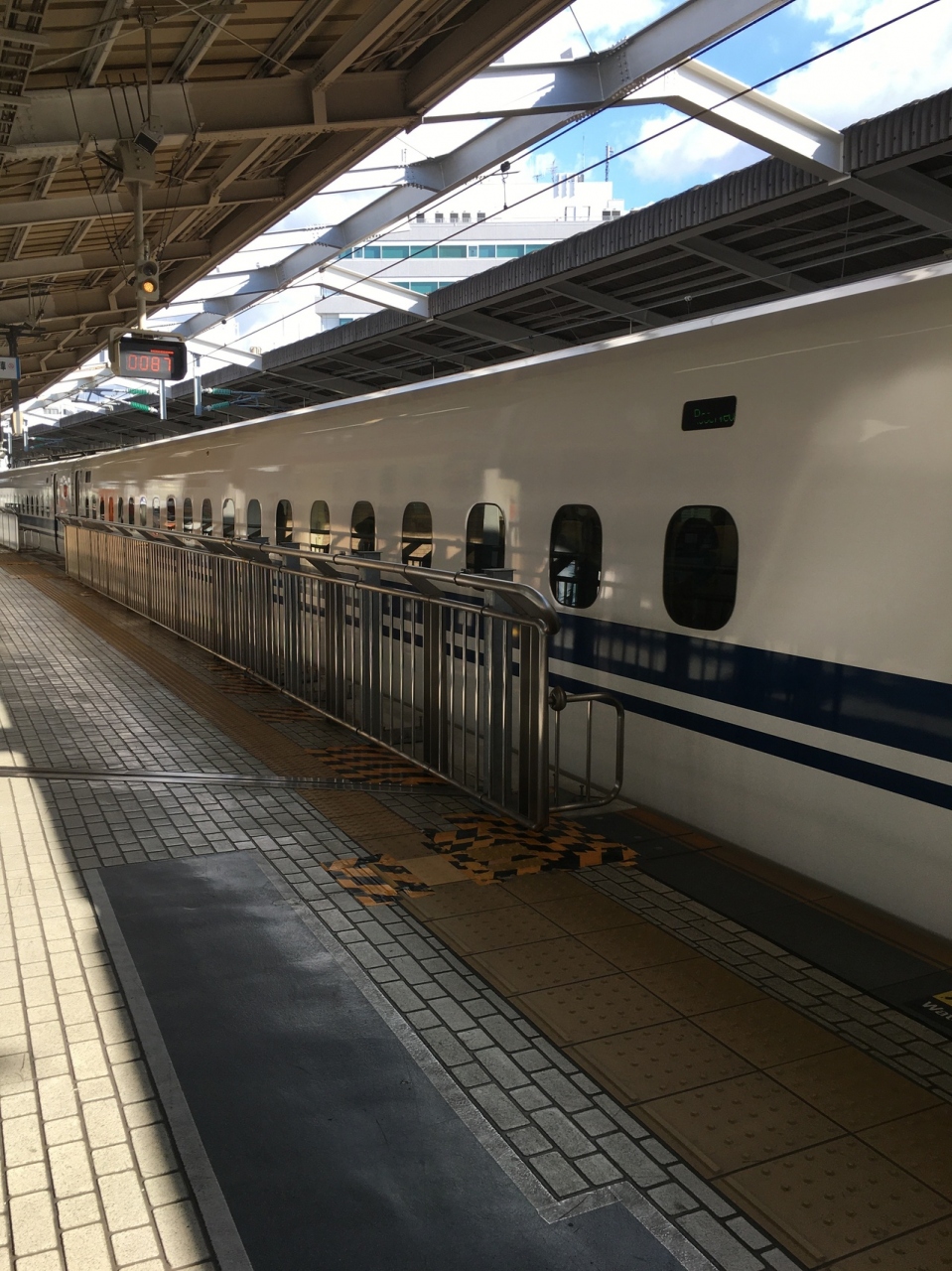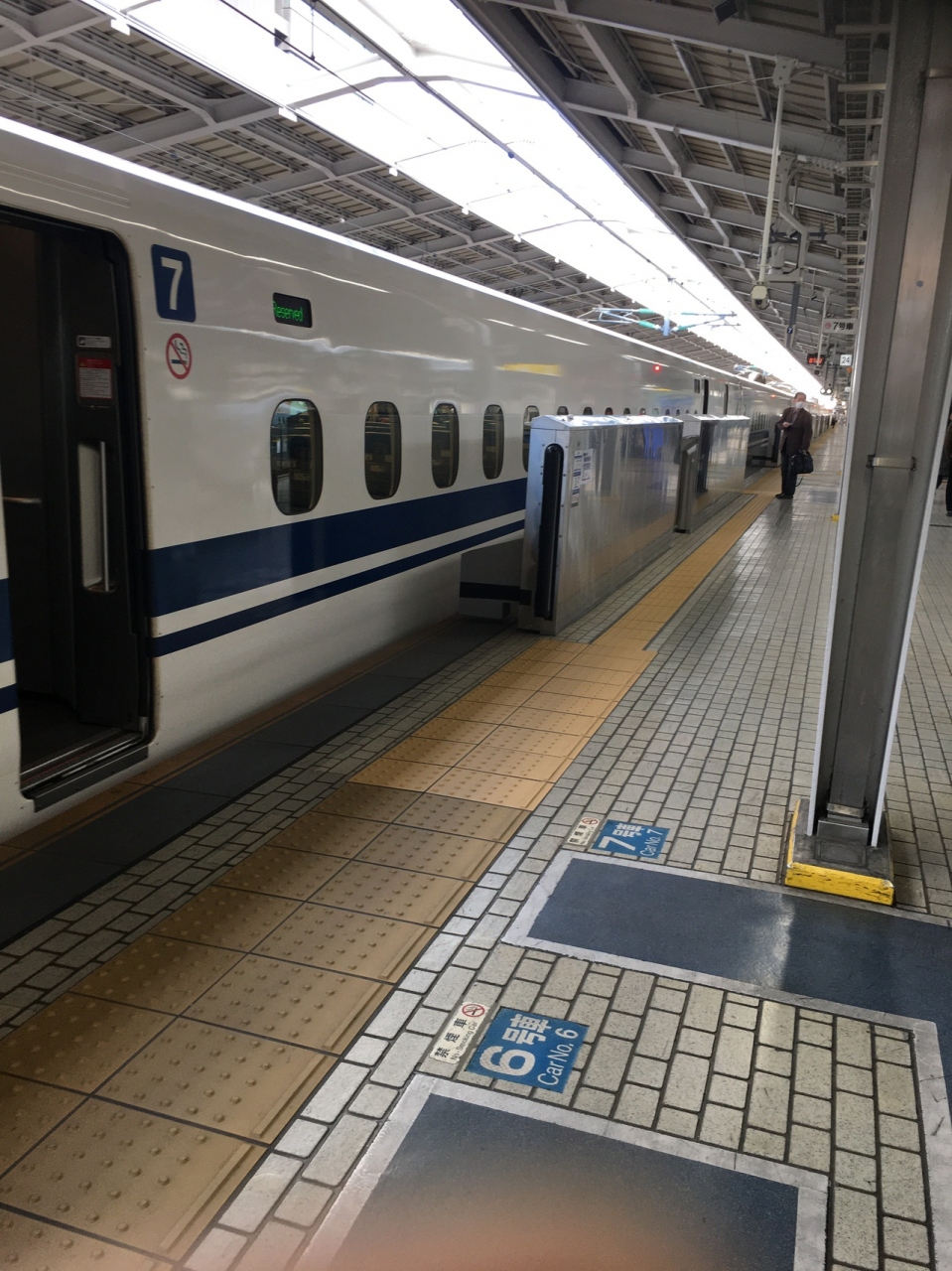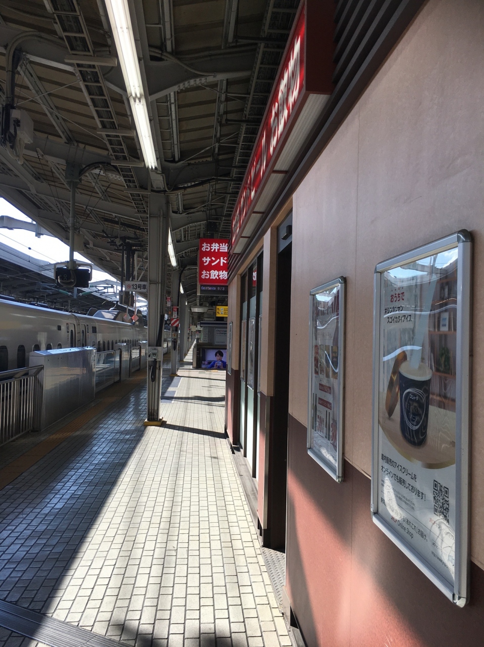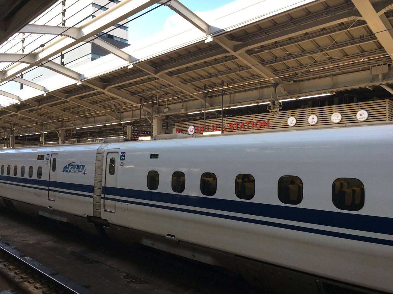 新幹線ホーム沿いで弁当を購入している間でも様々な種類の新幹線を見る方が出来、ホームに止まっていない時間発車ないぐらいでした。白とブルーのデザインが良く、鹿児島中央駅まで行く、さくら号は未来型列車には見えました。