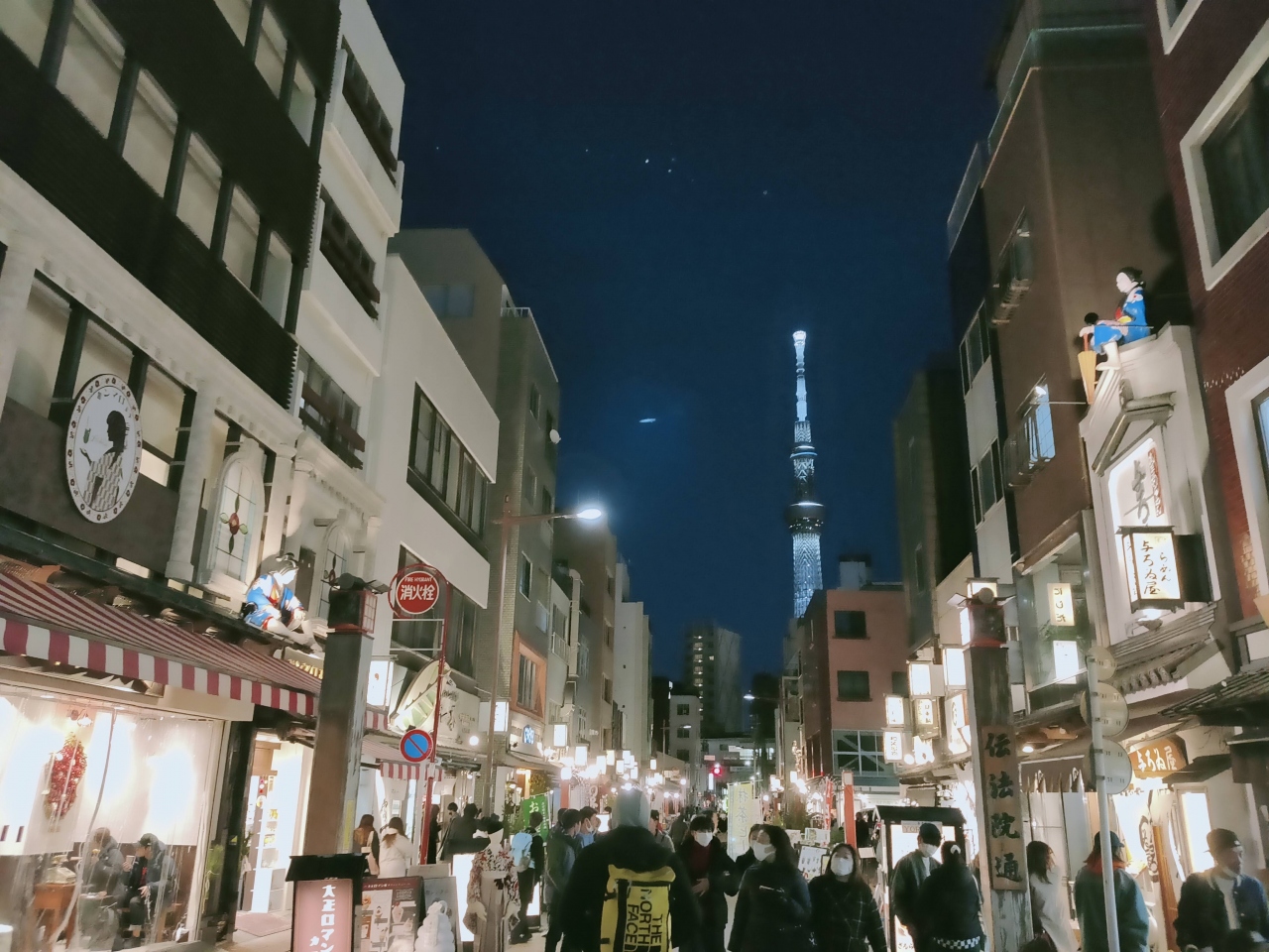 外国人が急激に増えたことで、浅草の中で最も変わったと思う通りです。仲見世通りの東西で趣が異なる通りです。