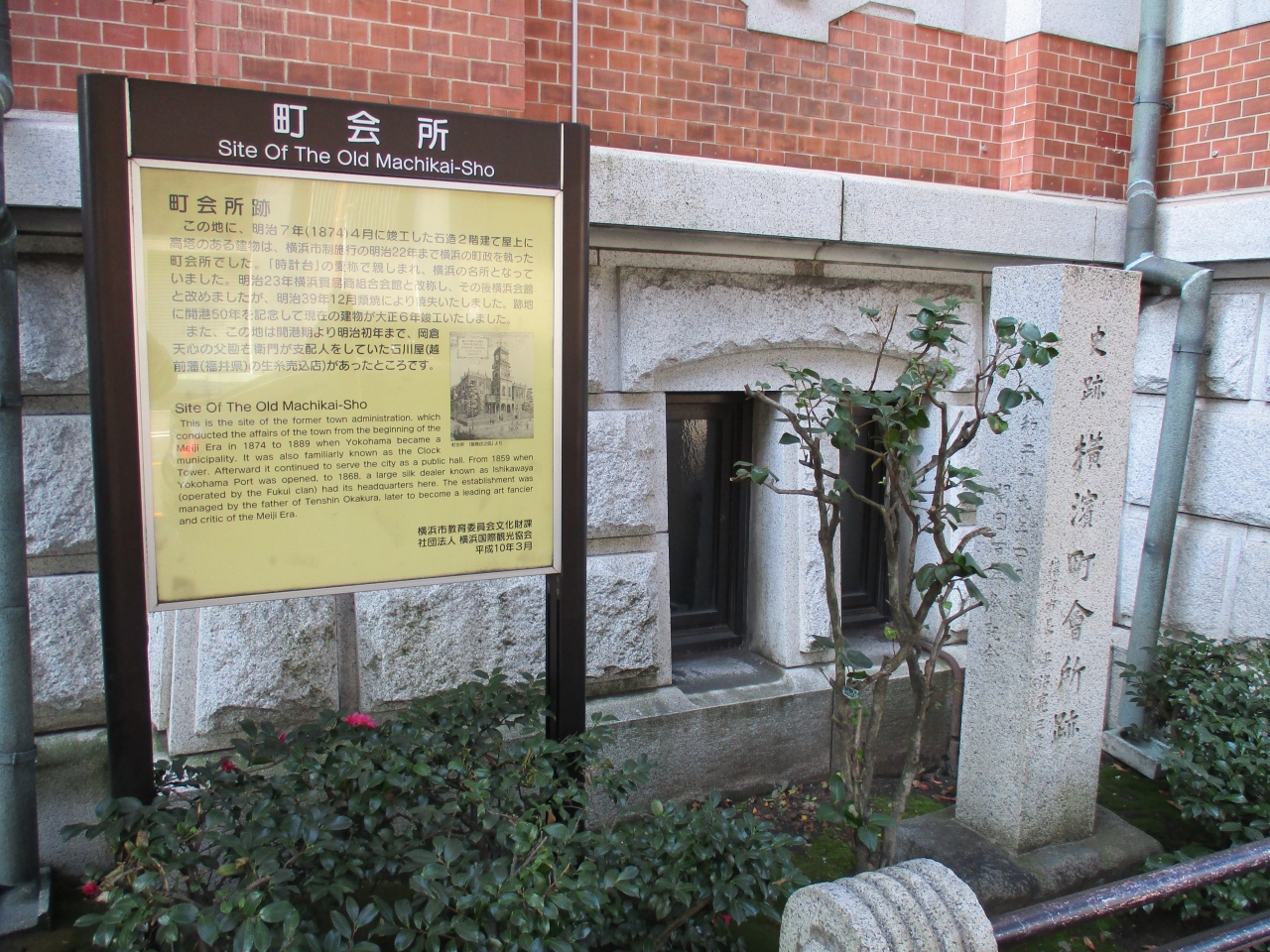 横浜市開港記念館の建物のそばに、石碑と案内板が立っていたので立ち寄りました。案内板に当時の建物が描かれていて、時計台の塔を確認できました。横浜が発展していくために、この場所も大切な役割があったのだと、あらためて横浜の歴史を感じました。