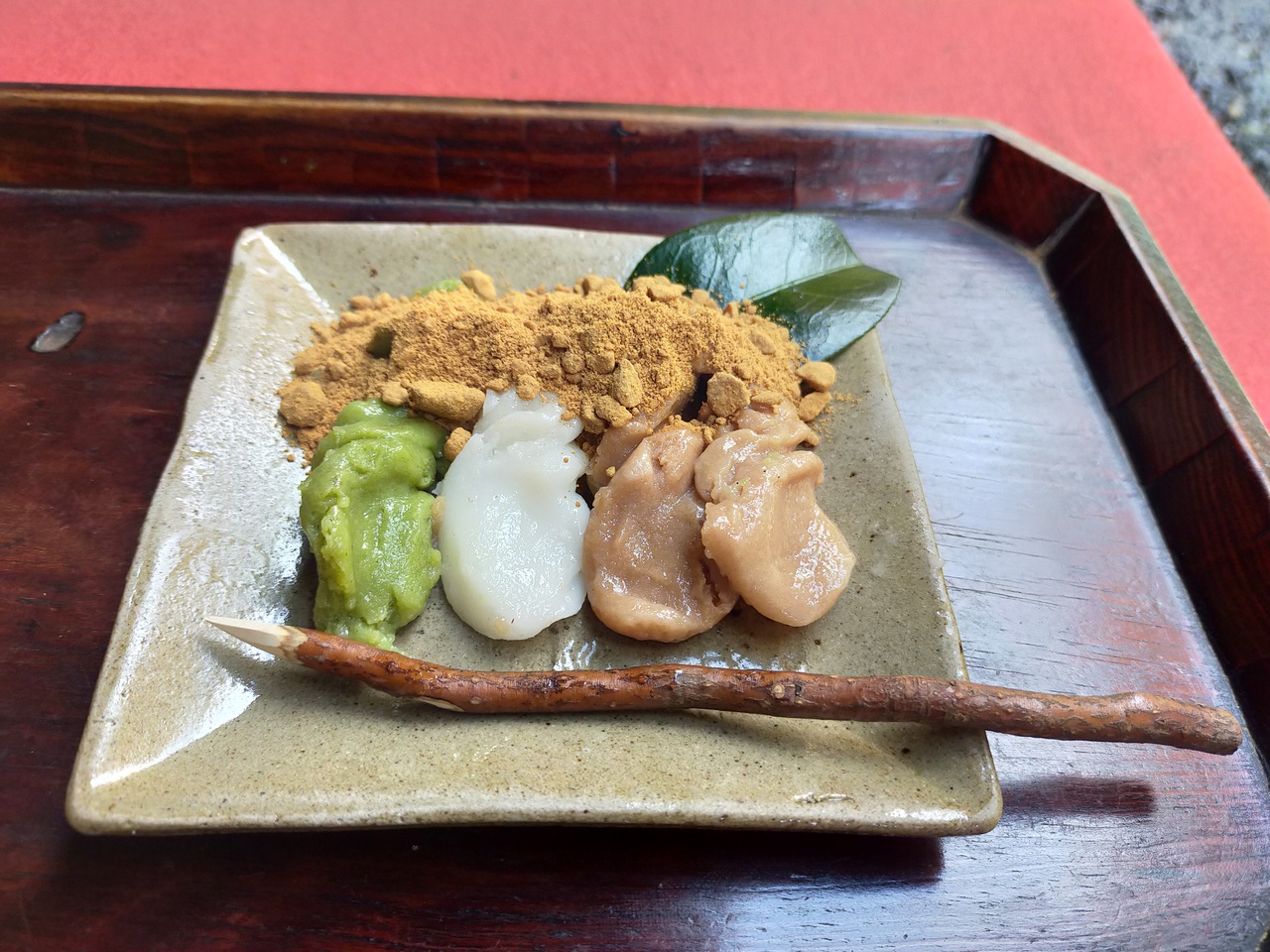門前スイーツめぐりにハマっていて、その一環で平野屋さんへ。志んこが有名で、愛宕山に登る人が力をつけるために食べたんだとか。味はシンプルで、黒糖きなこで食べるというスタイルです。果たして黒糖がその時代にあったのかと言うのは疑問ですが、美味しかったです。ボリュームは少なめで、値段もそこそこしてしまうので、雰囲気の料金といったところでしょうか。確か800円ほどしました。