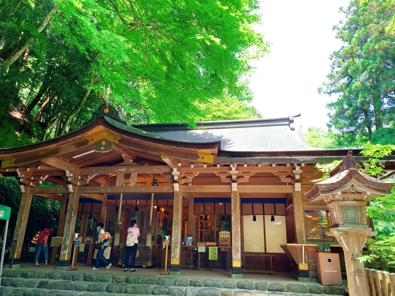 本宮の入口にある、両側に赤い灯篭が並ぶ風景は、SNSなどでも良く見ます。 平日に訪れたこともあり、誰も人がおらず、まるでポストカードのような写真が撮れちゃいました! 新緑の季節も赤と緑のコントラストが素晴らしかったですが、紅葉の時期や雪が積もる時期にも是非再訪してみたいなーと思いました。