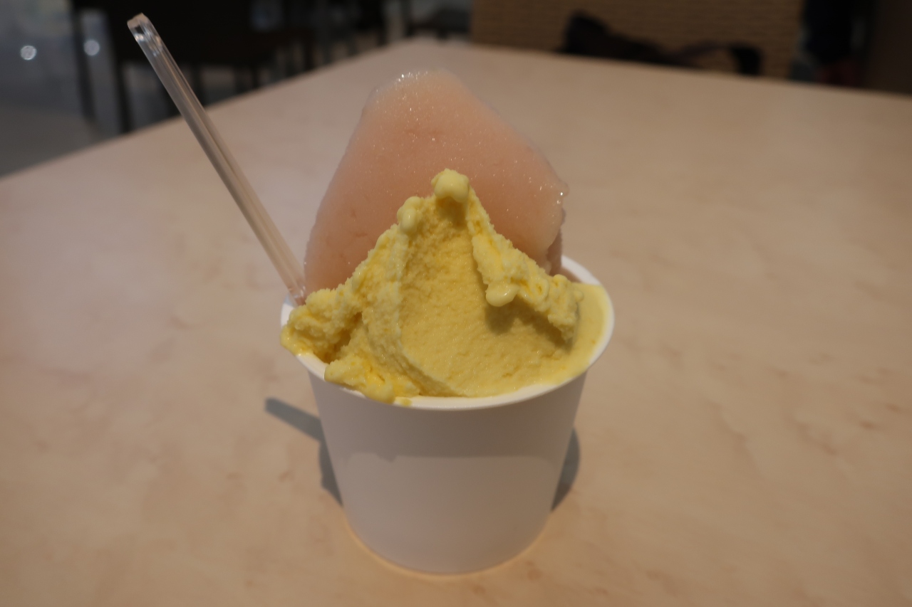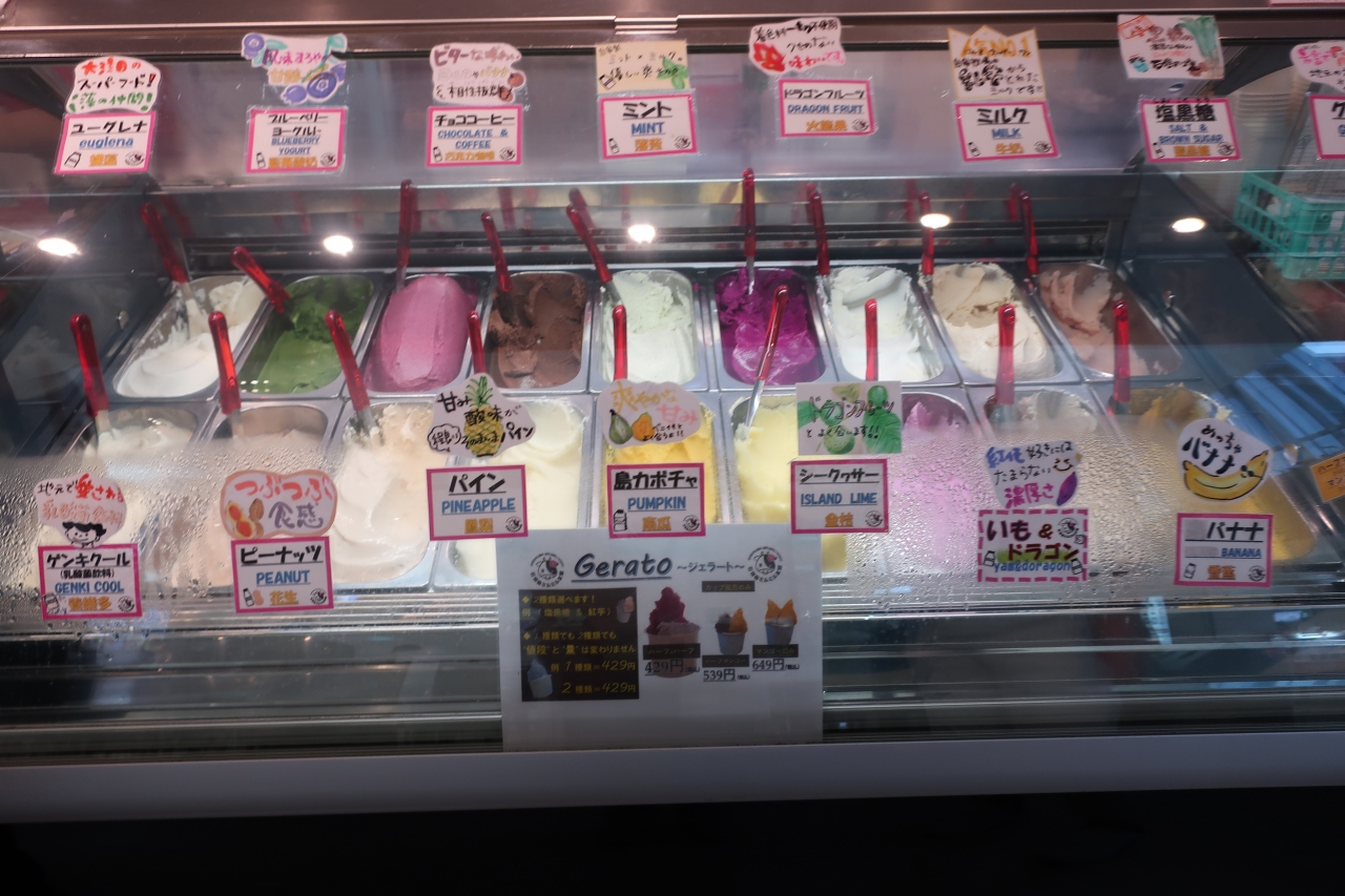 新石垣空港に入っているジェラートショップです。フードコートのところにありました。ジェラートの種類が豊富です。石垣島ならではのフレーバーばかりなので、チョイスするのに悩んでしまうほど(笑)。今回は、島かぼちゃとグアバのダブルをいただきました。どちらも素材の味がしっかりで美味しいです。さっぱりしており、トリプルでもよいかもって思いました♪。ジェラート以外にも、ソフトクリームやフードもあり、また石垣島へ行ったときは立ち寄りたいです。