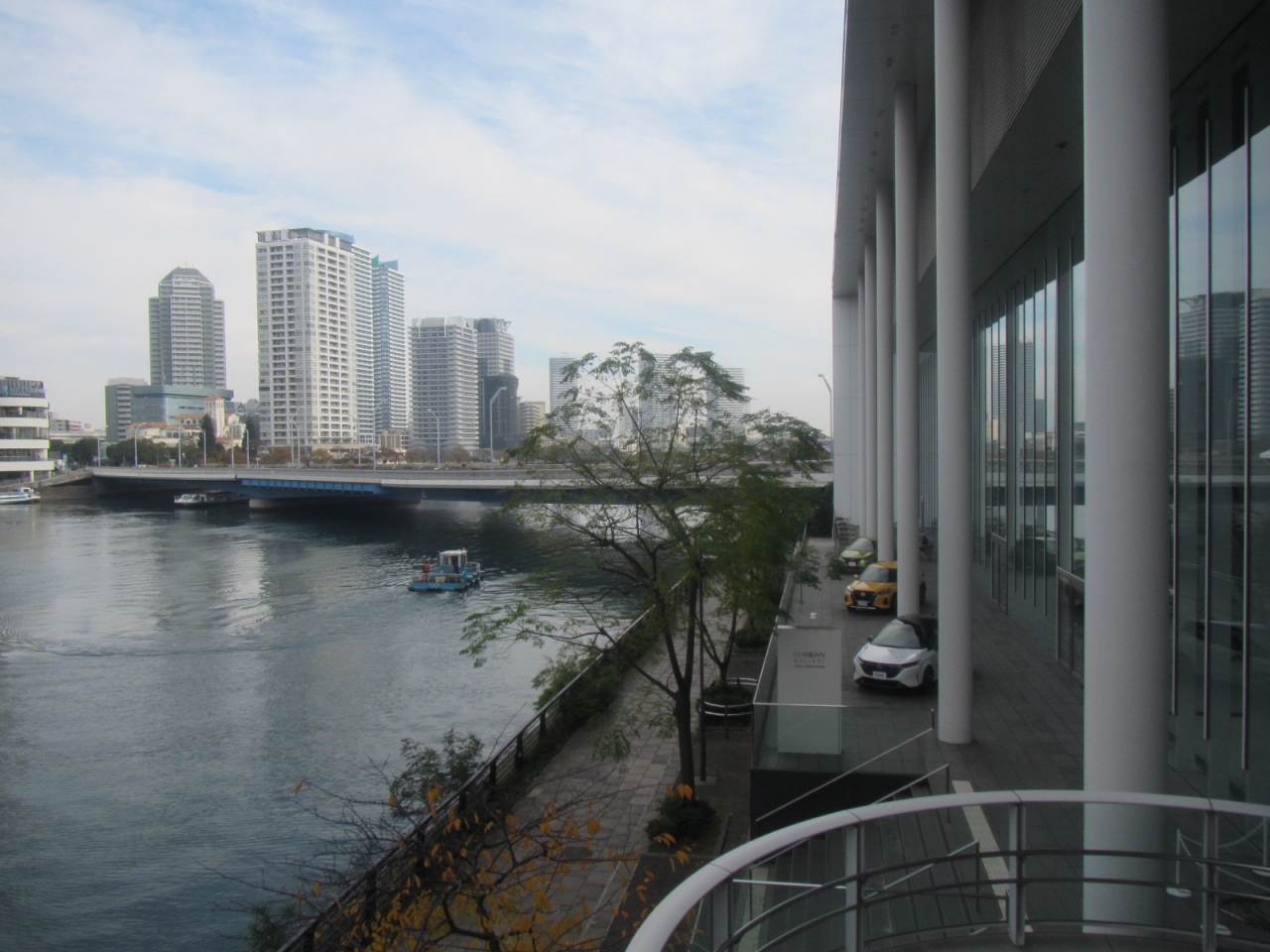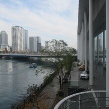 オフィスビル、商業ビルなどが立ち並ぶ都会的な帷子川河口沿いの風景を、吹き抜けで天井の高いガラス張りの店内から眺められる開放的な雰囲気のお店です。