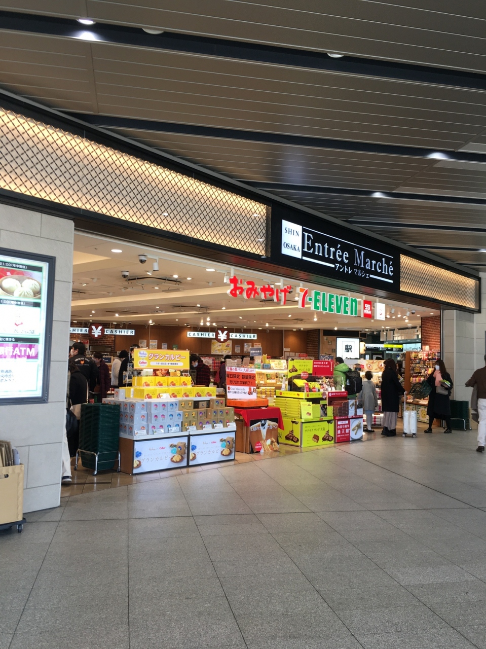新幹線駅弁改札口内、改札口付近にはたくさんの土産物屋がありましたが、その中でも最も大きな敷地を持つ店でした。セブンイレブンの店舗と併設している土産屋で、品がたくさんあるので迷いましたが箱のパッケージが可愛らしいグランカルビを購入しました。