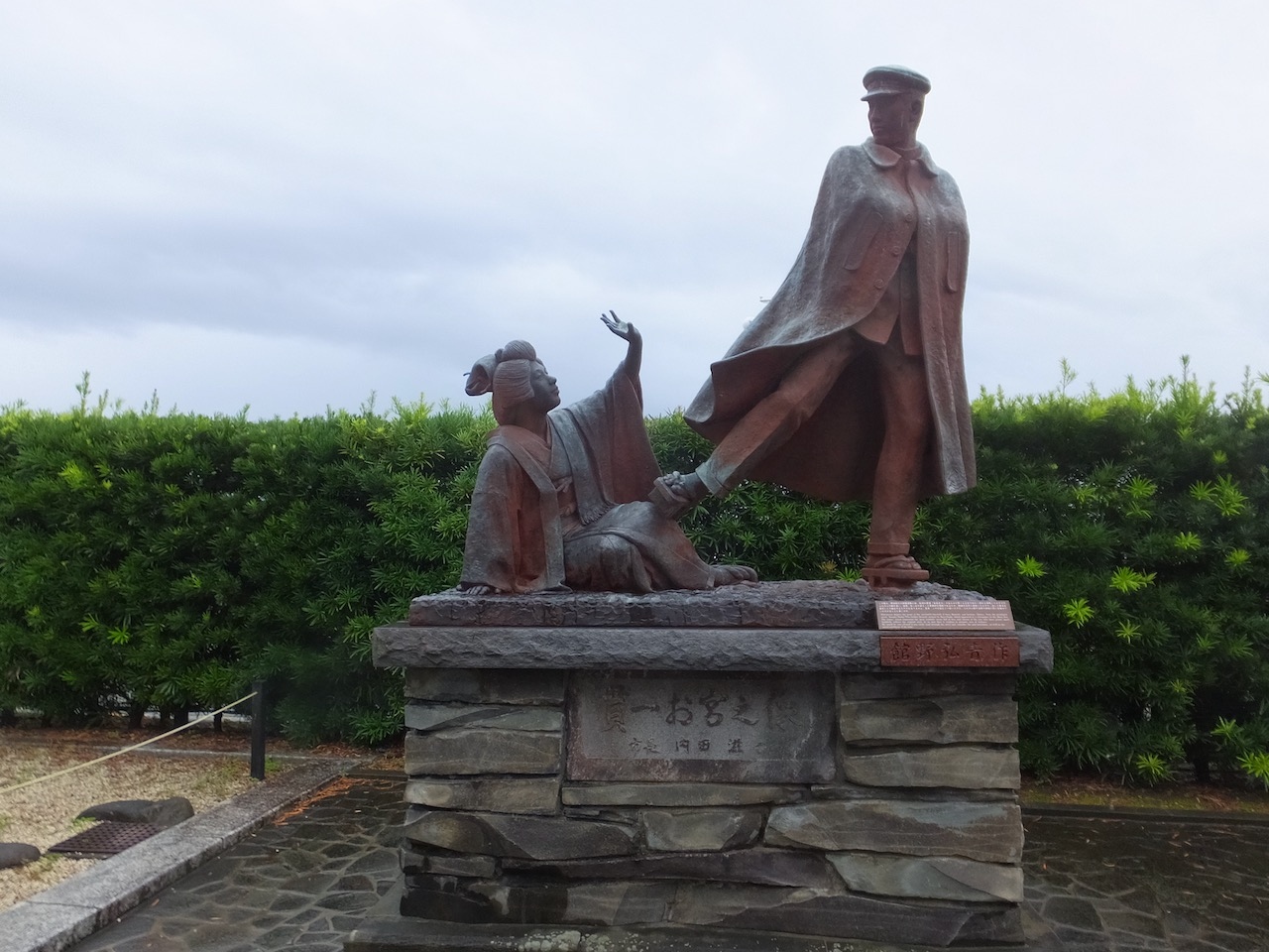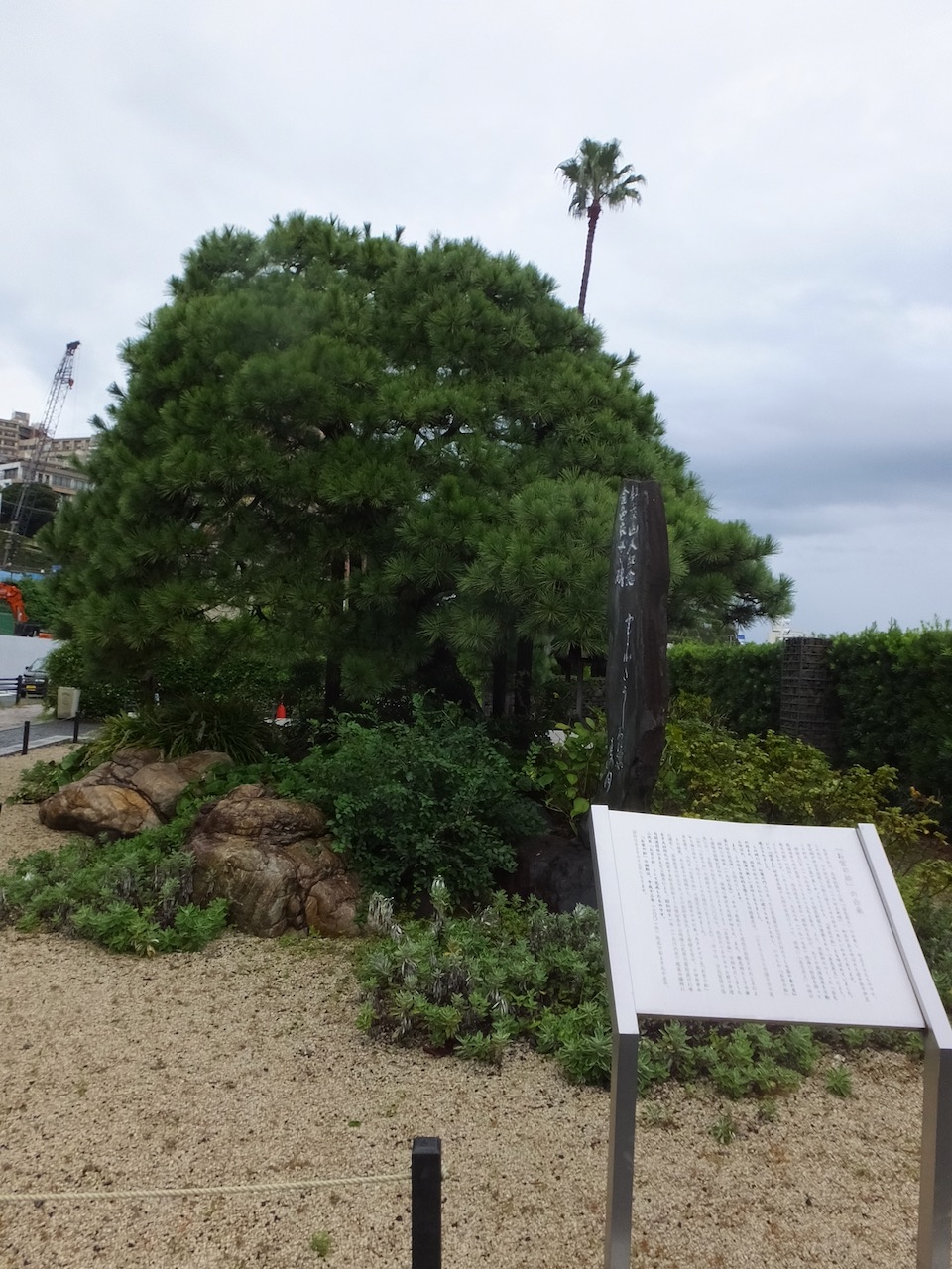 足蹴にされる像の北側に松があってこれがお宮の松。でも2代目のようで、先代の切り株は海側にあるので見落とさぬよう注意が必要です。