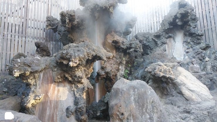 大正期以前は自然の間欠泉で一日数回の噴出が見られたようだ。現在は人工的に噴出するが、5分に1回の噴出頻度のようで、少し待てば間欠泉の雰囲気を味わうことができた。結構な勢いと温度で噴出するので、観光的にはなかなか楽しめる施設だった。