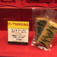 こちらのロブションはイートインがメインの割と大きな店舗。虎ノ門店限定品の虎柄のフィナンシェがありました。