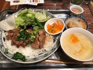昨日は写真講座で淀屋橋へ。お昼を挟んでの講座だったので、午前中が終了し、お昼は、すぐ近くのodonaへ。地下のレストランを一通り廻り、決めたのが「ベトナム料理インドシナ」。いろいろ食べたいのがありましたが、結局日替わりランチにしました。950円です。ライスに豚肉がのせられ甘酸っぱいソースがかかっていました。結構食欲がすすむ味付けで、なかなか美味しかったです。