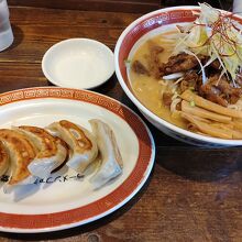 ホルモンラーメンかホルモンチャーハンで迷いましたが、今回はホルモンラーメンの味噌をオーダー。餃子とのセットメニューがあったのでそれに。結構な量のホルモンはホルモン独特の匂いと食感は失われておらずかなり甘辛い味付け。臓物系の匂いが苦手な場合は苦しいかも。その分スープは薄め。ホルモンのアジとバランスを取っているのでしょう。全体では味は濃い目。一方、麺はあまりこだわりは感じられず。普通盛りでも結構な量で、大盛りはなかなかのボリュームとのこと。ちなみに餃子はノーマル。これだけを頼む気にはなりませんでした。学生の多い地域の大衆的な大盛食堂というイメージです。