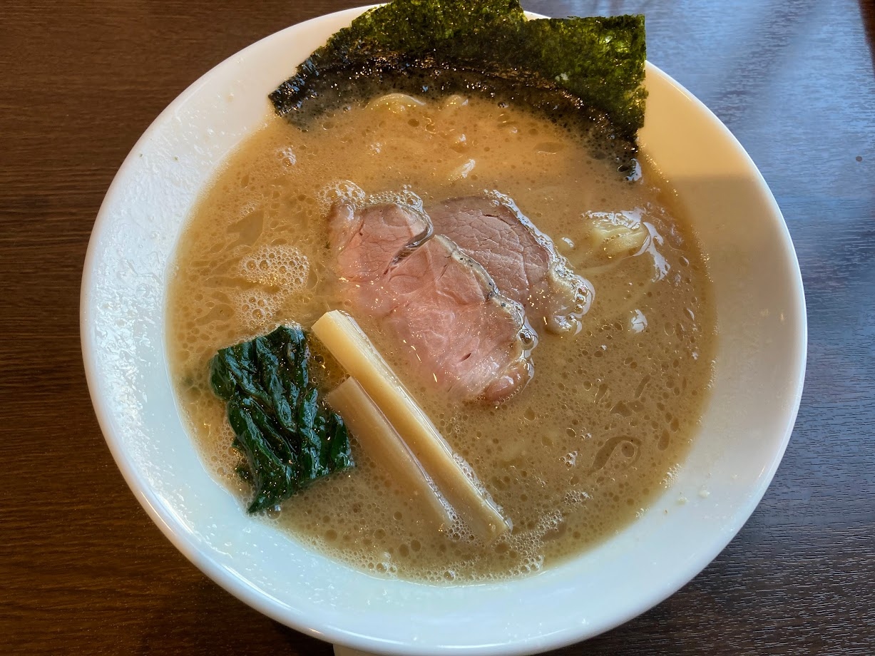 私は、一番人気とメニューにあった ラーメン NEW IEK(いえけー)を注文しました。もっちり平打ち麺に、ガチ造り濃厚魚介鶏豚骨醤油濃厚というびっくりするようなスープですが、濃厚だけどくどさがなく美味しかったです。