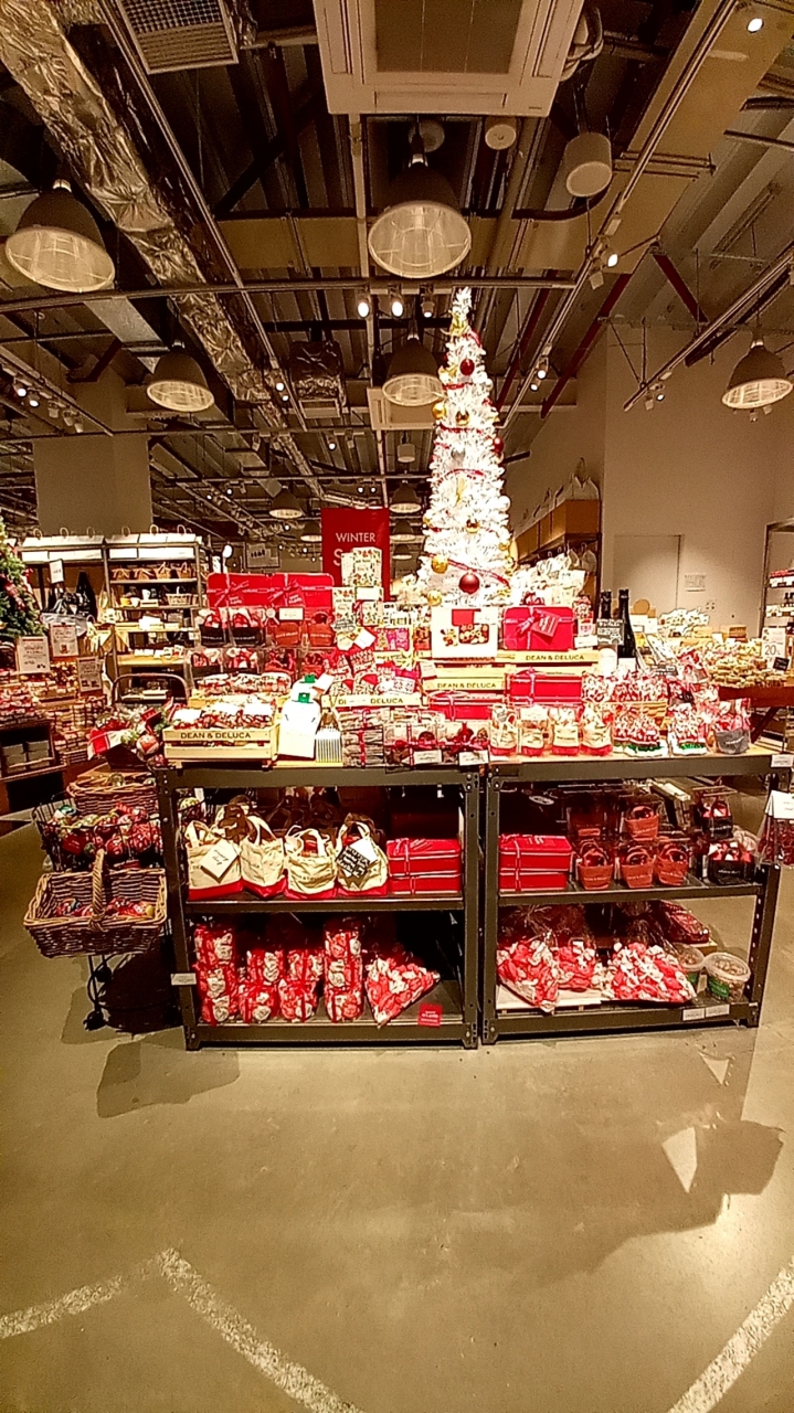 千葉県・木更津の『三井アウトレットパーク木更津』に出店している『ディーン & デルーカ カフェ 三井アウトレットパーク 木更津店』の店内には、クリスマスシーズンならではの商品が販売されています。