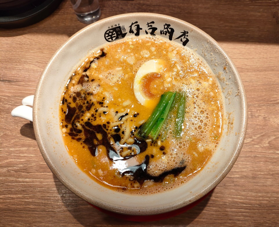 福岡空港ラーメン滑走路の新店舗「有吉商店」さん。博多ラーメンではめずらしい中太麺を使った担々麺をいただきました。とんこつスープがベースのおかげか担々麺の濃厚さの中にアクセントがあります。博多とんこつラーメンとは一線を引くラーメンです。