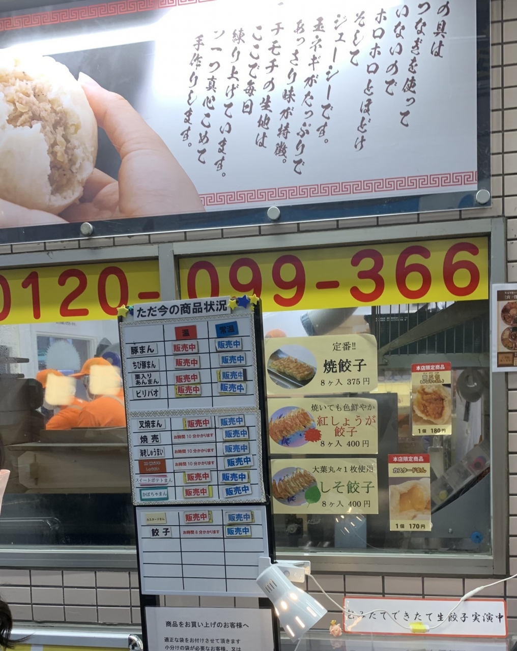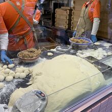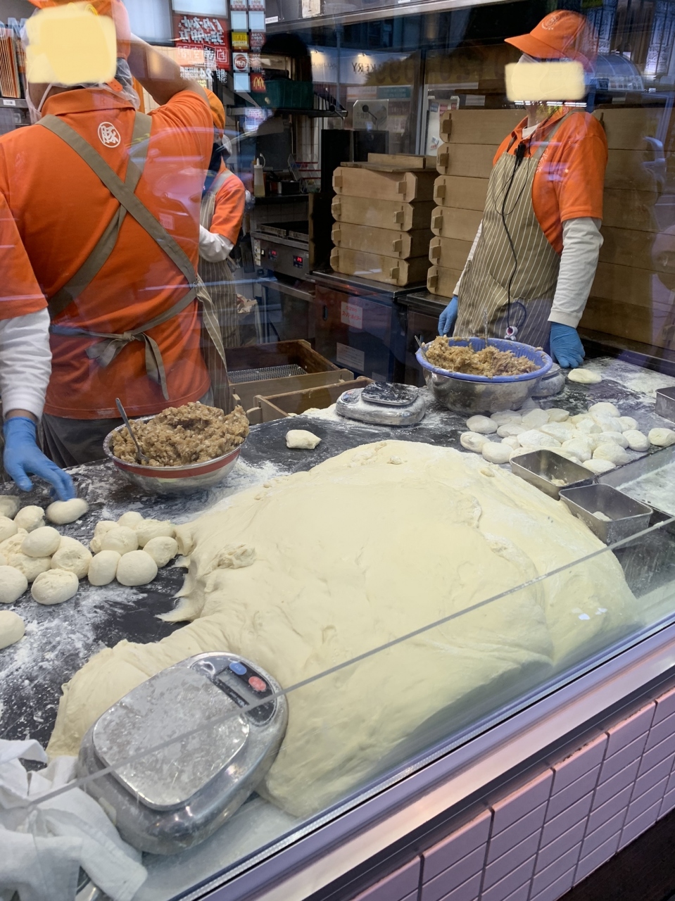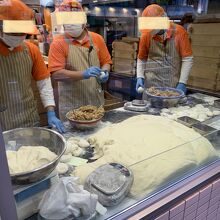「豚まん」を作っている様子が ガラス越しに 見えます。